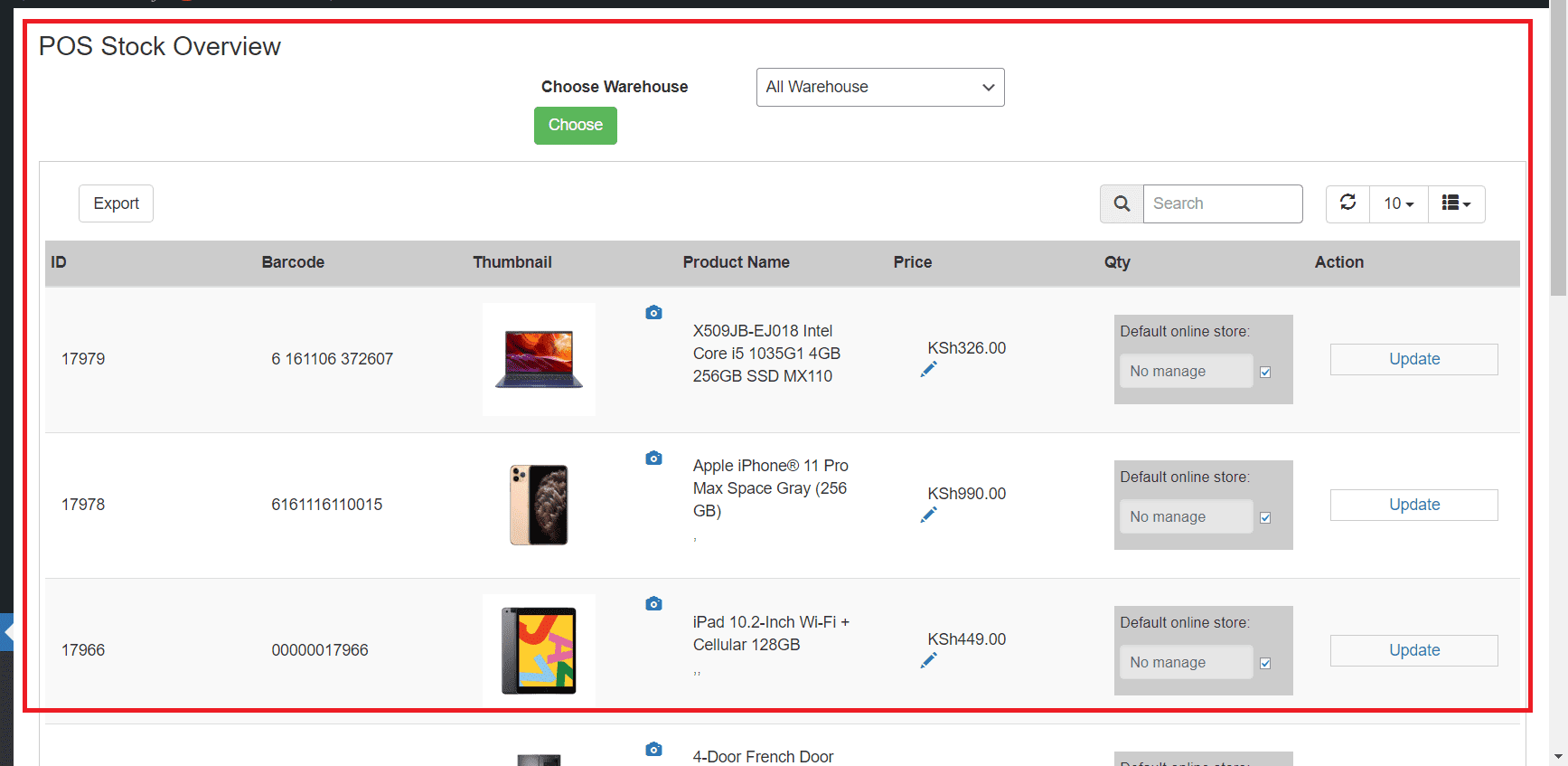 Viewing POS Stock overview