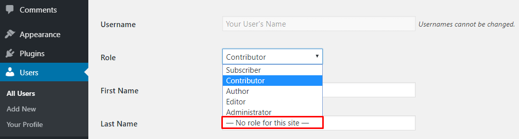 Alternatively, assign them to No role for this site to keep their posts and accounts on your website. Here are the steps: