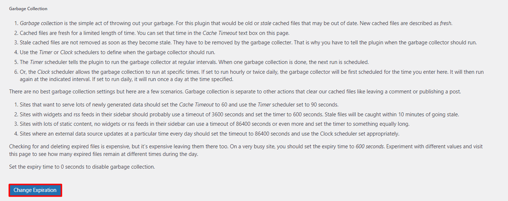 Additionally, the WP Super Cache plugin provides a wide array of caching features, with the most prominent feature being garbage collection. Users can set a cache timeout, and the system will clear cache files accordingly. To do so, follow these instructions below: