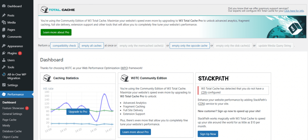 Here’s how to clear WordPress cache using W3 Total Cache: