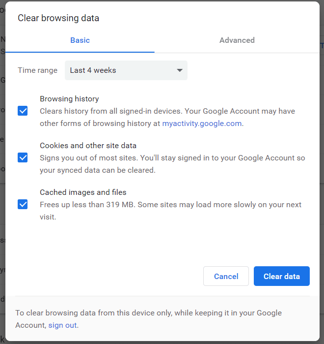 - It will take you to a page where you can perform Basic or Advanced cache clearing.