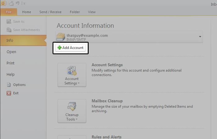 2. Click File, then Add Account. See Figure 1 below.